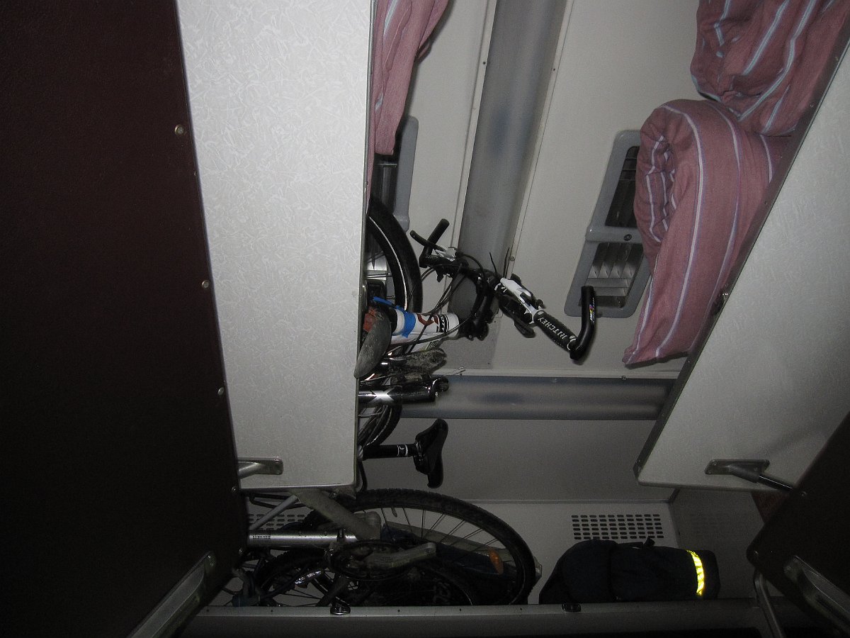 Siedzieliśmy w towarzystwie czterech sympatycznych Ukraińców, którzy jechali na budowę do Rosji. Cały czas jedli i pili, pamiętając też, by współpasażerowie nie byli głodni ani trzeźwi. Ostatnie, przydzielone nam kanapki musieliśmy zapakować sobie na drogę. Tłumaczenie, że nie możemy pić, bo mamy przed sobą wiele kilometrów na rowerze jakoś podziałało i dostawaliśmy coś do popicia tylko co czwartą kolejkę. Całą drogę padało, przestało we Lwowie. Tutaj złapaliśmy ostatni pociąg do Mościsk. Potem do Przemyśla po ciemku na rowerach.